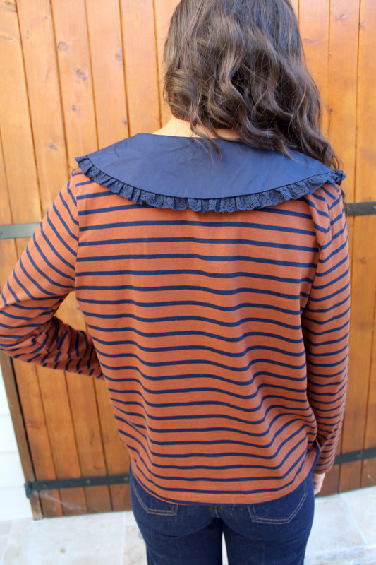 T-shirt manches longues rayé choco/marine ♡