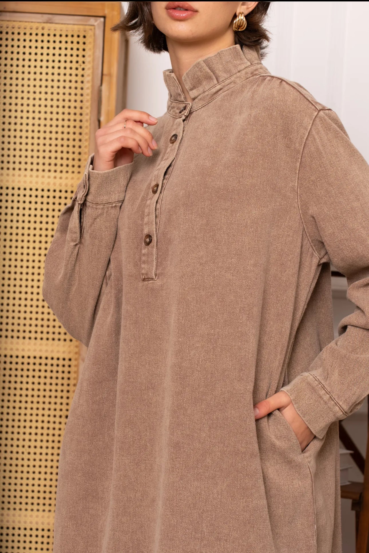 Cette robe en jean combine praticité et style.